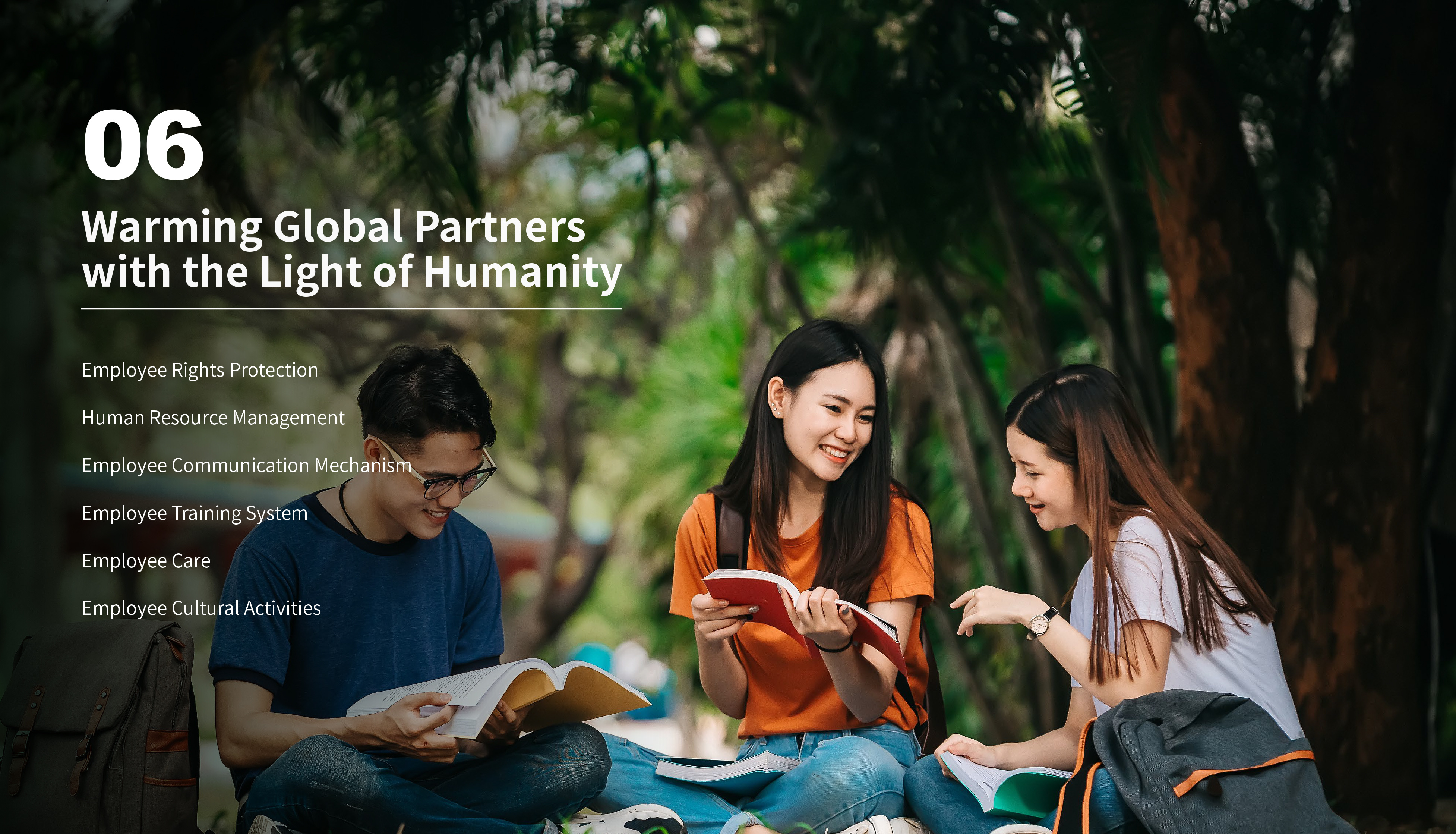 Bajo su marco ASG, ReneSola demuestra un profundo cuidado humanístico. Su gestión de recursos humanos es justa y precisa, allanando caminos de desarrollo profesional para los empleados. La empresa ha establecido mecanismos de comunicación diversos para un intercambio de información fluido y la resolución oportuna de las preocupaciones de los empleados. Un sistema de formación sistemático, con cursos personalizados según las necesidades, empodera a los empleados. Los servicios de cuidado cálido protegen tanto la salud física como mental, mientras que diversas actividades culturales fomentan la cohesión del equipo y crean una atmósfera positiva y armoniosa.